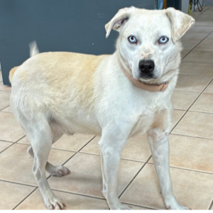 After he was abandoned, Finn ran through the strange neighborhood, making friends. The 11-month-old pup wiggled and wagged up to the strangers. The eye-catching, mostly white, blue-eyed Labrador – Husky mix was polite, too. He didn’t chase cats who watched from their yards. Finn focused on people, the ones meant to be his best friends.