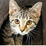 There are times when the shelter is full. During those times, occasionally, a very good kitten shows up in a very bad place, a place where the odds of her surviving aren’t good. That was little Rose Bud’s situation. In the worst winter weather, she was outdoors, in a dangerous place.