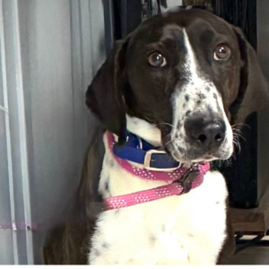 The 18-month-old German Short-Hair Pointer-mix, now named Prairie, is still slender, but she’s no longer starving. Now she’s svelte, not a skeleton with fur. Prairie is also learning to trust people. Everything in her past had taught her that she shouldn’t risk doing that. After all, her person abandoned her near Lloyd’s Wildlife, a place she nearly starved to death.