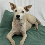 The shelter director summarized Lilly’s life as “a train wreck so far”. The blue-eyed, blonde, nine-month-old pup was starving, filthy, terrified and had a digestive system wrecked by eating anything she could to stay alive. Lilly’s short life must have been day after day of struggle. Some pups would have given up, but Lilly kept putting one paw in front of the other.
