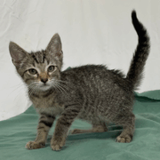 Kittens show when they, once-upon-a-time, were loved. Tawny’s way of approaching people, ready to share a cuddle, ready to play, shows that she lived with people. Yet, now, when she’s just four months old, those people are through with her. The beautifully marked tortoiseshell kitten was wandering alone, gazing at strangers, pleading for help.