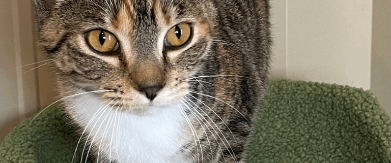 The Shelter director says that Speaker, a beautiful creation of Mother Nature, a seven-month-old, multi-colored Tabico kitten, is the friendliest feline in the Shelter. Unfortunately, now, Speaker is also the loneliest. The little lady, who loved to meow to her sisters and visitors, doesn’t have anyone to talk to lately.